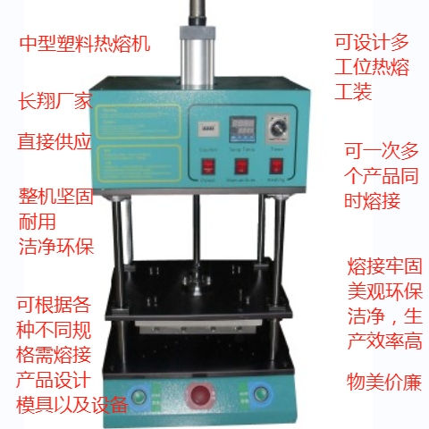 中型熱熔機: 生產(chǎn)廠家長翔,長翔是一家生產(chǎn)各種塑料焊接設備的工廠,本廠生產(chǎn)的其他設備還有例如:塑料旋熔機、塑料熱板焊接機、超音波焊接機、超聲波焊接機等。